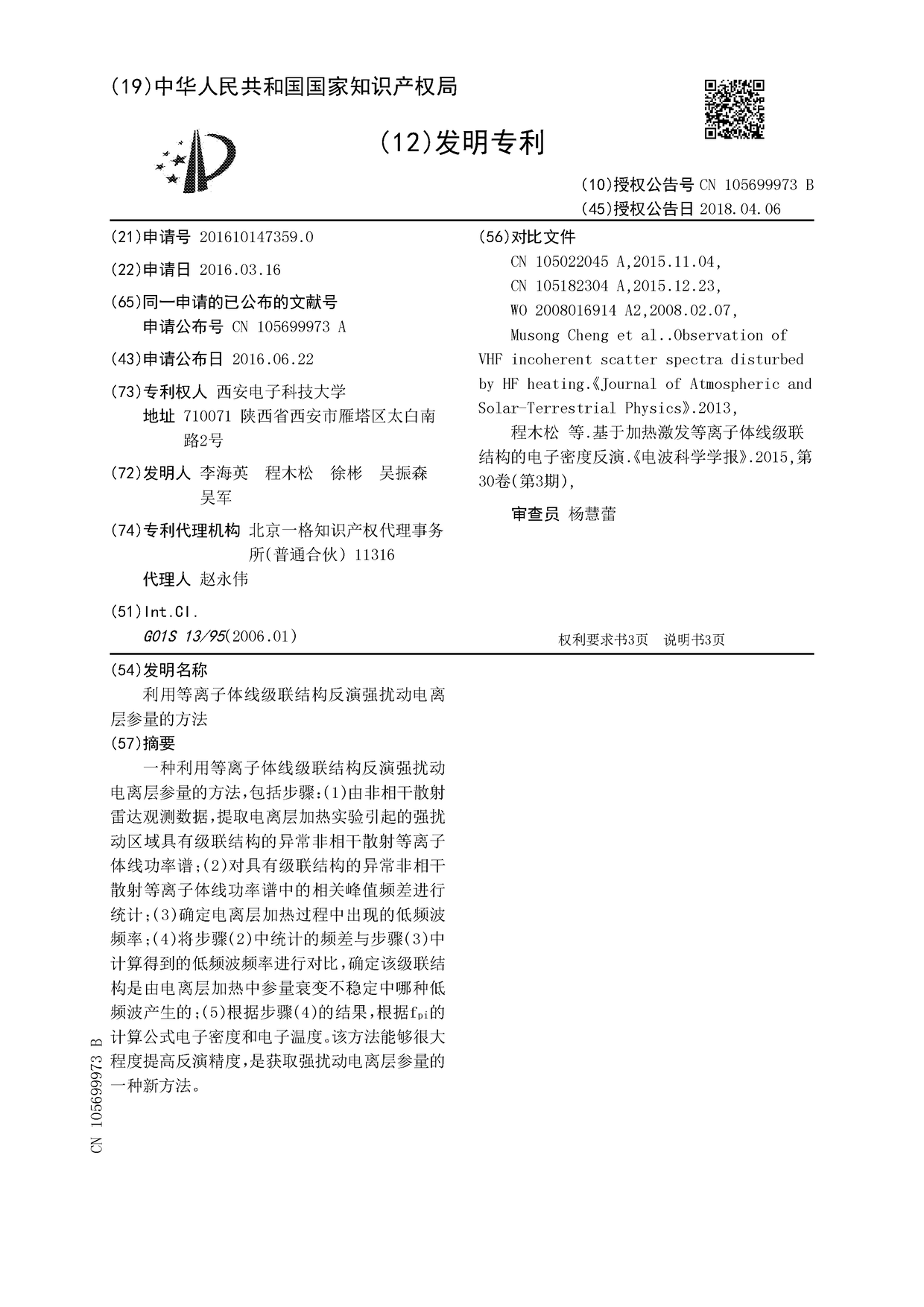 - 项目名称 利用等离子体线级联结构反演强扰动电离层参量的方法