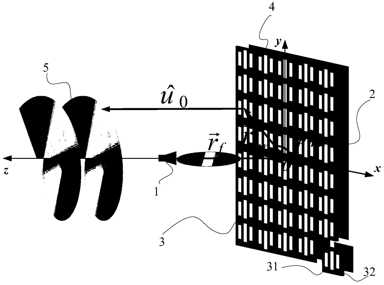 - 项目简介 本发明公开了一种轨道角动量涡旋波束产生装置及方法。其技术方案是:由M行N列的电磁超表面反射单元(31)和介质基板(32)构成电磁超表面结构(3),由电磁超表面结构(3)和金属背板(2)组成相移网络(4),金属背板(2)位于电磁超表面结构(3)的背面,同时兼作接地板。将馈源(1)放置在电磁超表面结构(3)的中心轴向处,由馈源(1)发出的入射波照射到电磁超表面结构上,当入射波得到电磁超表面结构提供的补偿相位后,再经相移网络(4)反射,产生本征模态为l的轨道角动量涡旋波束(5)。本发明解决了现有技术结构复杂、成本高、波束发散和效率低的问题,可用于通信技术中信息的发射和接收,有利于扩大通信容量。