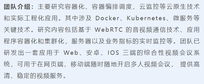 3. 容器化、自动化构建运维环境。目前国内外基于 Docker+Kubernetes搭建的云平台研究稳步增长,广泛应用于大规模分布式集群系统的场景搭建和架构设计。视频会议的服务端以及流媒体端均采用容器化集群部署, 利用Kubernetes 进行容器编排和调度,提高服务的可用性和扩展性。 -