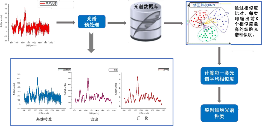 3.智能识别系统。经过微流控及拉曼检测系统处理,采集到大量细胞拉曼光谱。由于不同细胞拉曼光谱相似,难以区分,因此本项目建立了智能识别系统。基于大数据分析基础,从海量数据中挖掘有用信息。