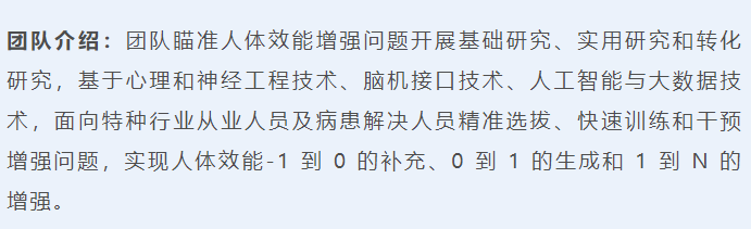本项目面向人体效能增强、尤其是人员智能增强需求,利用脑机接口技术、通过直接与大脑交互的方式,可以部分替代机械、冗长的传统训练,让新兵快速获得相关技能、在较短时间内变为身经百战的老兵。在一线单位开展的红蓝对抗比武中,团队研发的“基于脑机接口的特种人员视觉认知训练装备”较传统装备可以大幅提升训练效率、缩短人员训练周期、提升人员表现极限,并在与全J百余项训练装备的竞争评比中脱颖而出,获批参加由J委训练管理部举办的全军“十三五”为战抓教创新成果展。该展每五年举办一次,是我J规格最高的训练装备创新成果展。