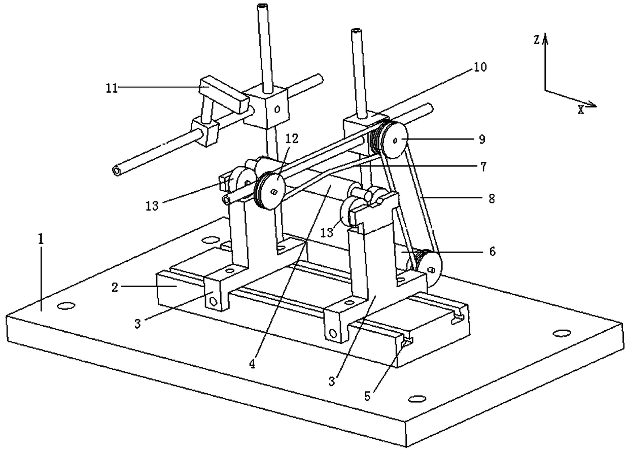 - 项目简介 本发明公开了一种适用于微型转子的超精密动平衡装置,包含装置固定部分、转子支撑架部分、转子驱动机构部分和不平衡振动监测部分。装置固定部分的支撑架固定框可在导轨上滑动,安装导轨的底座固定在底板上;转子支撑架部分可实现微弱不平衡振动的放大,并根据不同的振动放大比例可分为两种支撑结构形式;转子驱动机构部分的电动机可通过皮带传动方式驱动不平衡转子旋转;不平衡振动监测部分通过位移传感器、鉴相传感器分别获取转子不平衡振动幅值及相位。与传统动平衡装置相比,本发明所涉及的装置结构简单、体积较小,对微弱不平衡振动的测量精度高,更适用于微型转子的超精密动平衡。