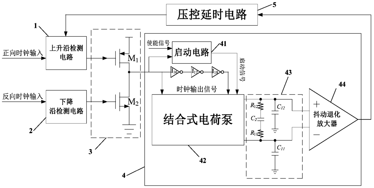 - 项目简介 本发明提供一种用于流水线型模数转换器的时钟占空比校准电路,包括:上升沿检测电路,用于获取低电平窄脉冲信号;下降沿检测电路,用于获取高电平窄脉冲信号;输出控制电路,用于根据低电平窄脉冲信号和高电平窄脉冲信号输出时钟信号;电荷泵环路,用于将输出时钟信号的占空比偏差信号转化为第一电压信号;压控延时电路,用于将第一电压信号进行延时处理,得到第二电压信号,并输出给上升沿检测电路;上升沿检测电路获取第二电压信号的低电平窄脉冲信号,通过输出控制电路输出预设占空比时钟信号。通过采用单边沿微分电路控制输出时钟信号,利用电荷泵环路完成对输出时钟占空比的检测,控制压控延迟电路的延迟时间,输出精确的占空比时钟信号。